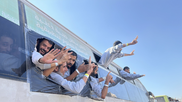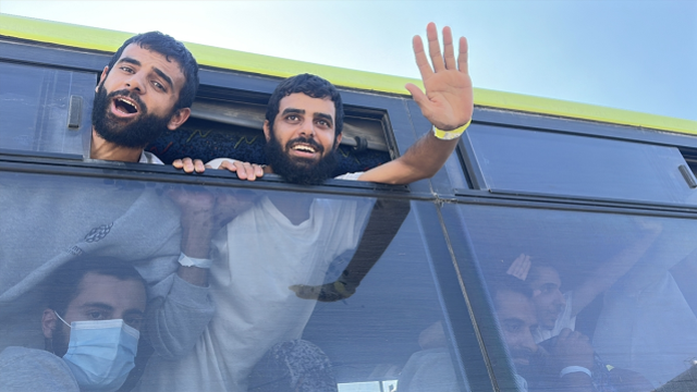 Uluslararası Kızılhaç aracılığıyla serbest bırakılan Filistinli esirler, Kerem Ebu Salim Sınır Kapısı’ndan otobüslerle Gazze Şeridi’ne giriş yaptı.